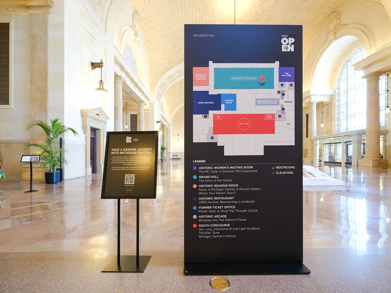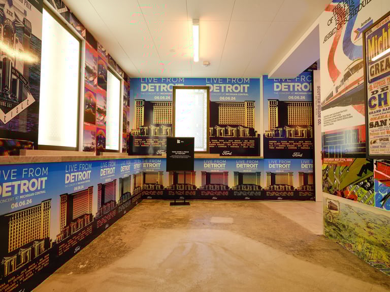 Create all the visual materials needed for this celebration, including signage for the opening concert and the entire 11-day Michigan Central OPEN event. Design a standout concert poster and put together a community kit with posters, stickers, and coasters that local Detroit restaurants can use to help spread the word and get the neighborhood excited about the event.